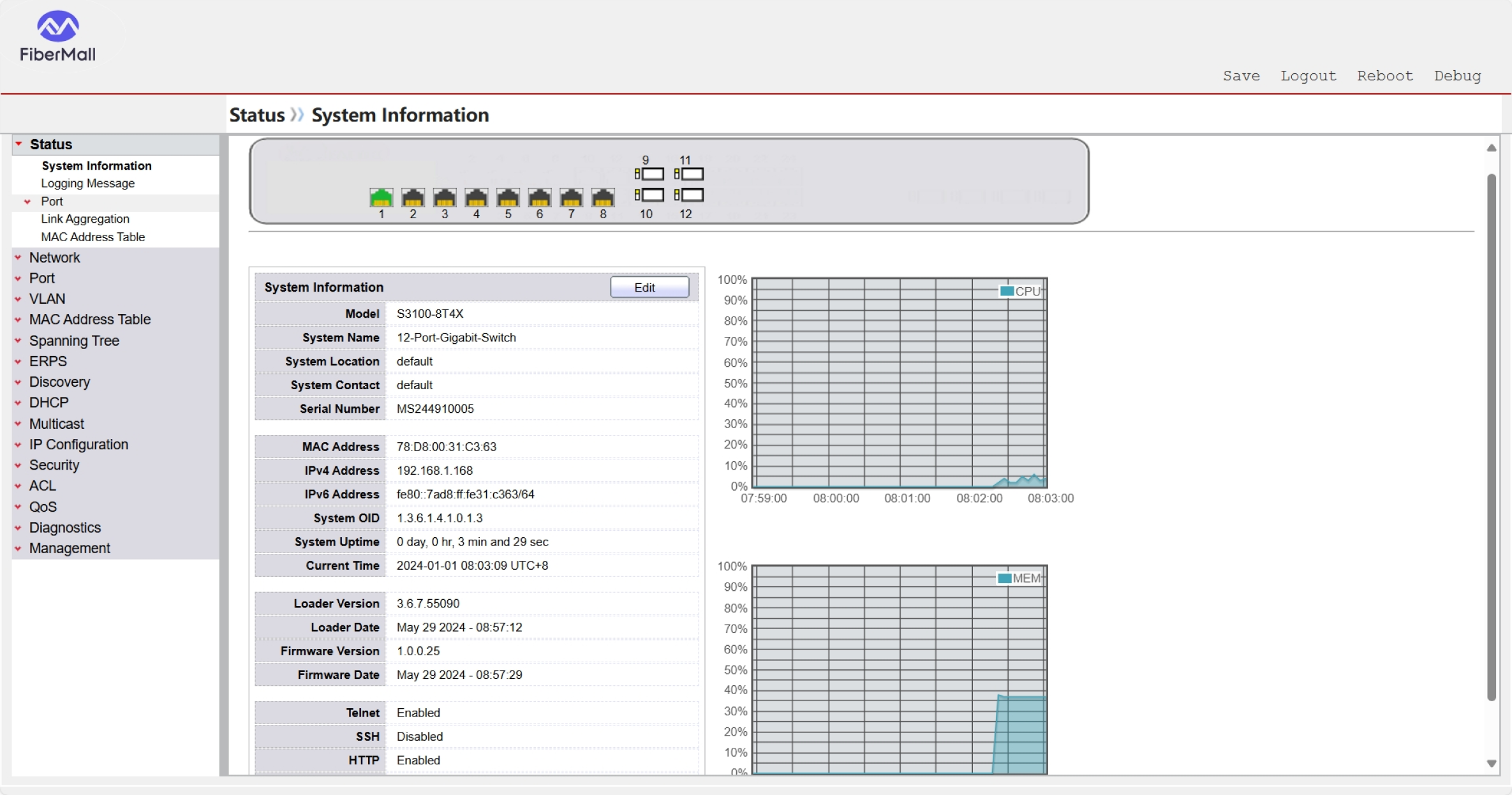 Supporting SNMP, CLI, WEB, SSH, and other methods to deliver a streamlined experience for the device's convenient maintenance