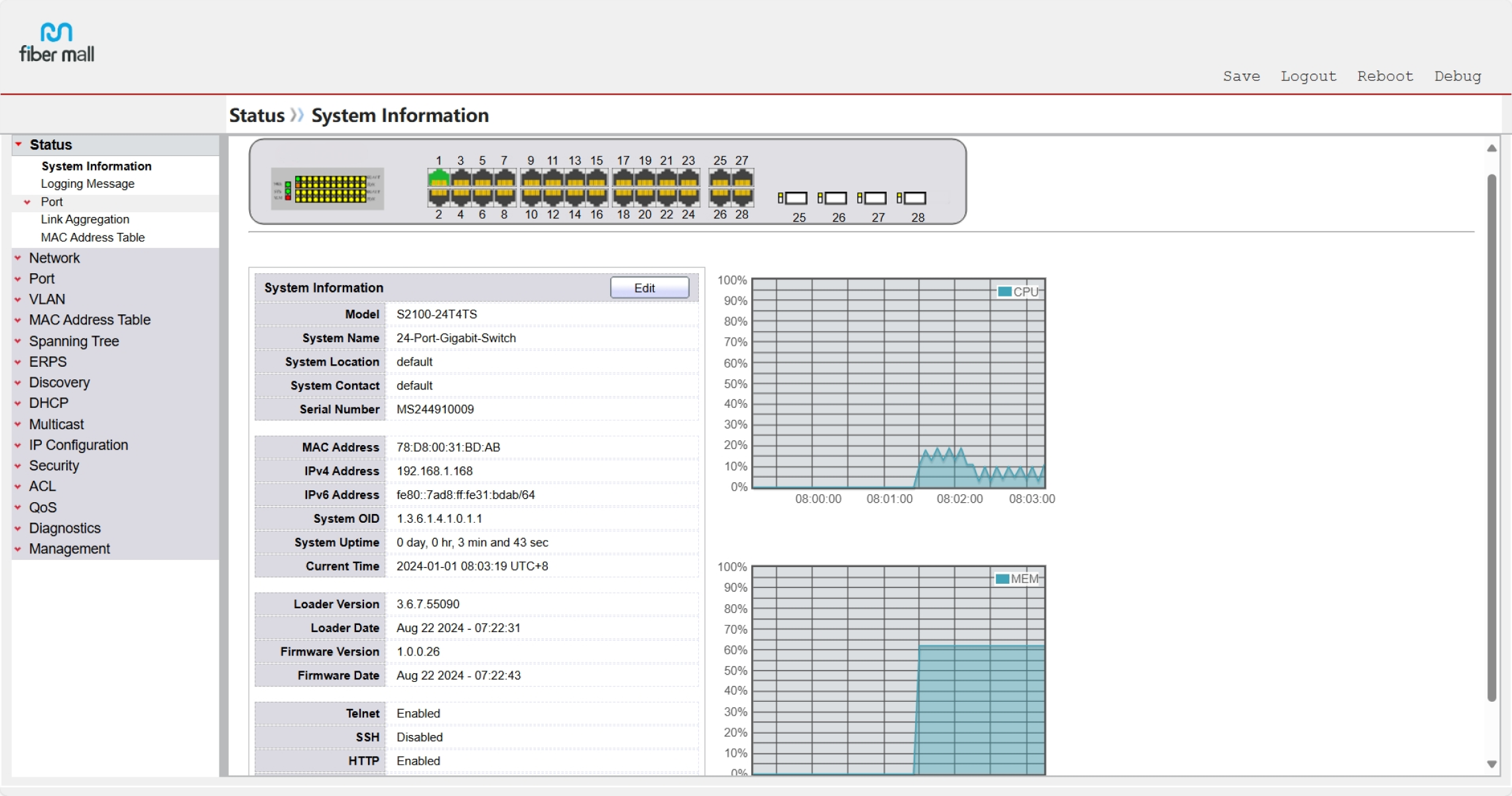 Supporting SNMP, CLI, WEB, SSH, and other methods to deliver a streamlined experience for the device's convenient maintenance