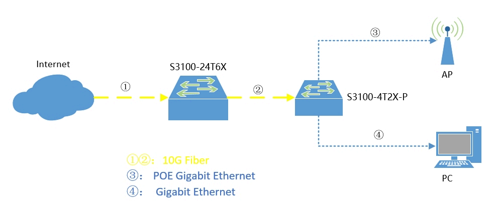 Ports 1 to 4 support PoE power supply and comply with IEEE 802.3af/at standards
