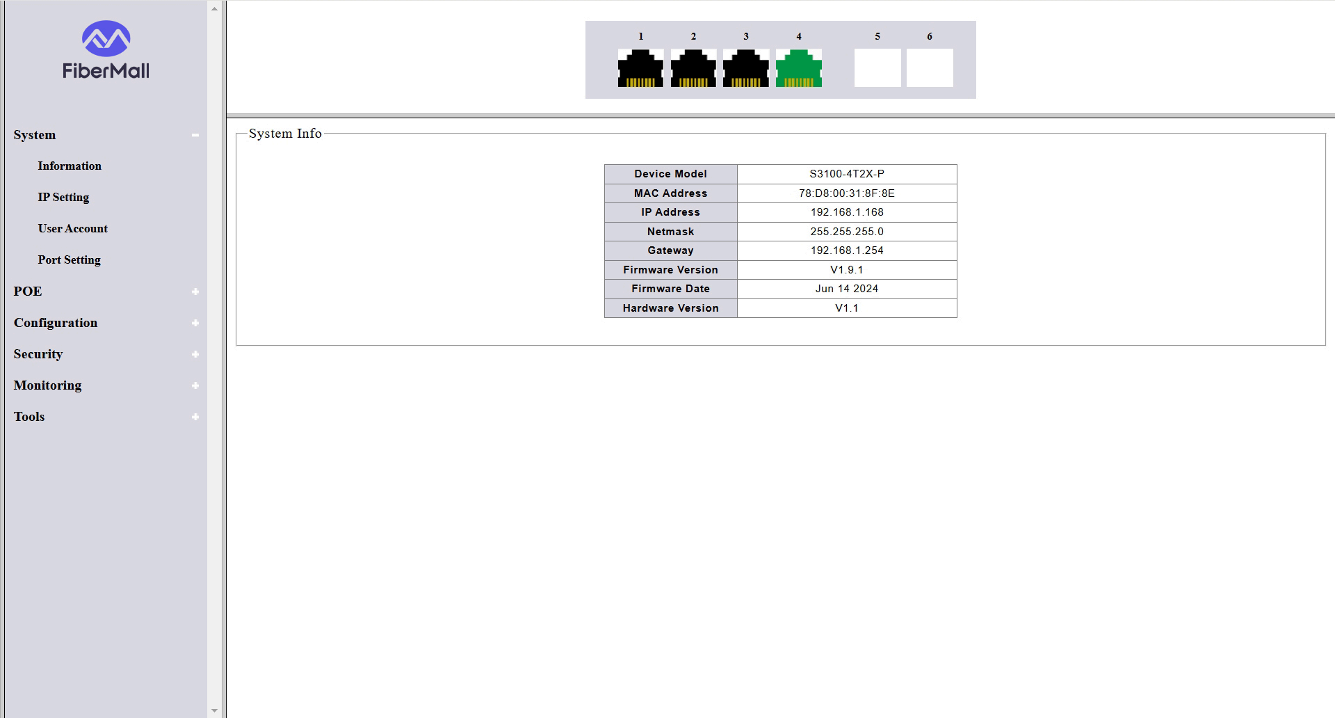 Ports 1 to 4 support PoE power supply and comply with IEEE 802.3af/at standards